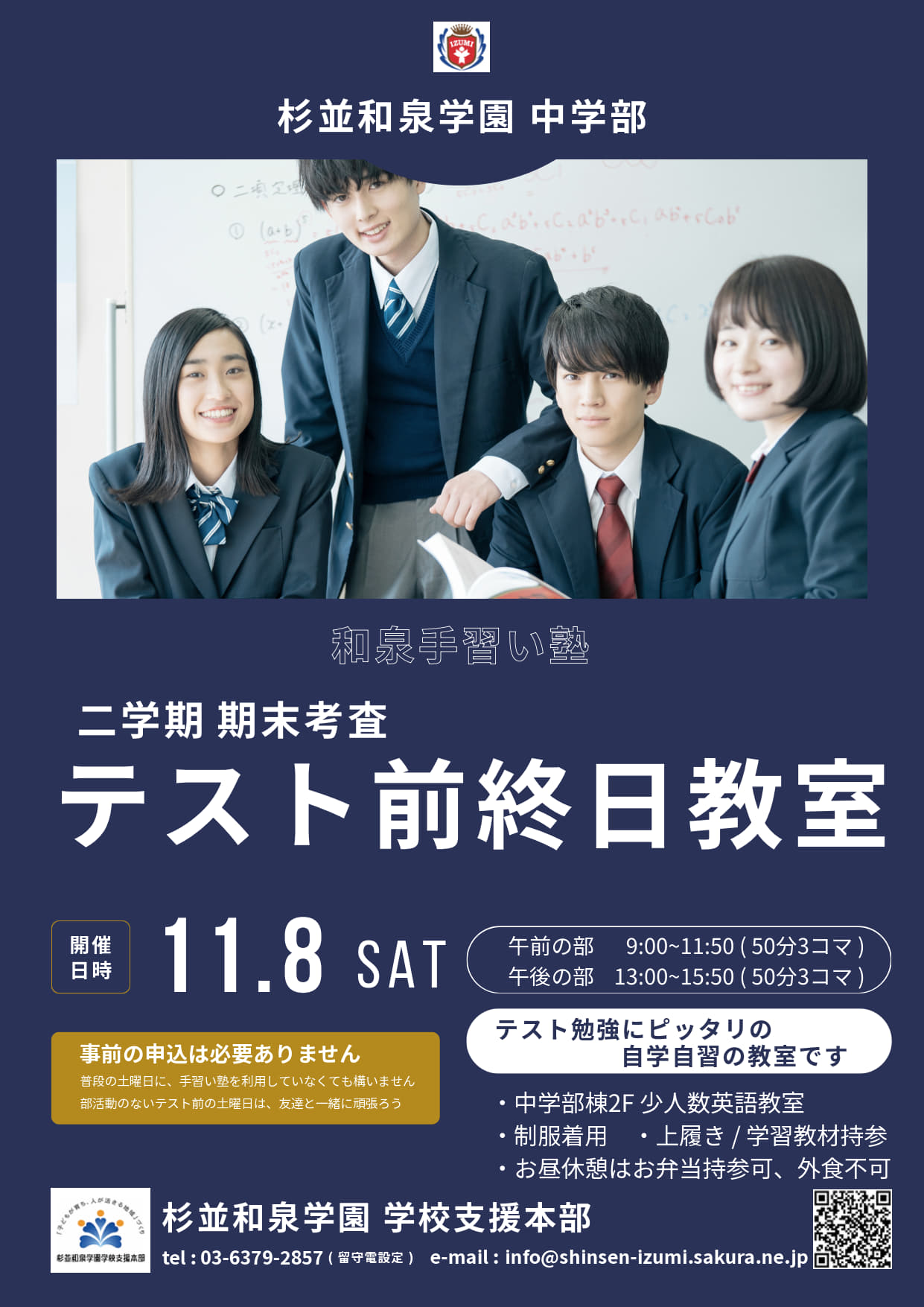 和泉⼿習い塾 ⼆学期 期末考査 テスト前 終⽇教室